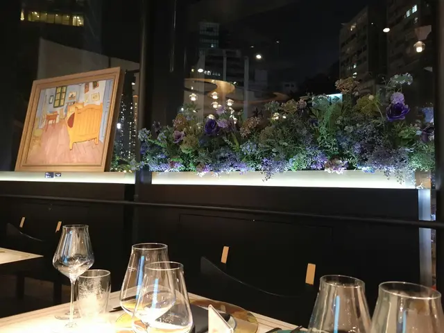 餐厅区不大,只有六七台四人桌(店外也有位置可坐),晚餐加上我们只有三台,很清静。周围布置了梵高名画,餐具也很漂亮。