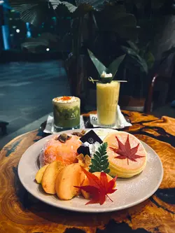 招牌日式梳乎厘Pancake即叫即製,最新季節限定款式以紅葉和柿子點綴,瀰漫著浪漫秋意,於秋季成熟的橙黃甜柿果肉細緻,爽脆多汁,甜中帶蜜香,