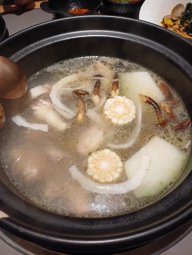 湯底加了原個椰子水,店員會在湯滾起後幫我們加入雞肉,大滾後5分鐘到焗1分鐘。店員提醒一定要先喝湯,非常清甜,我一般不會喝打完邊爐的湯,未開始前喝,我覺得很不錯,還有雞塊好嫩滑,基本沒有覺得柴的部位。