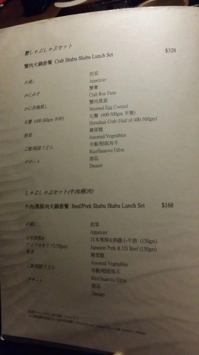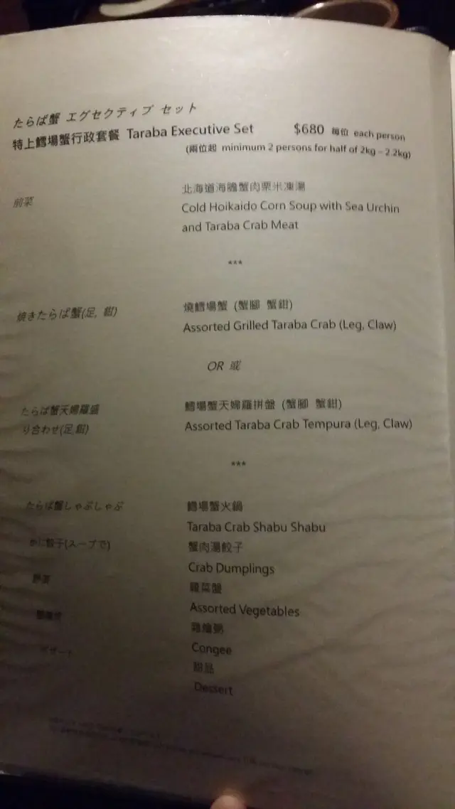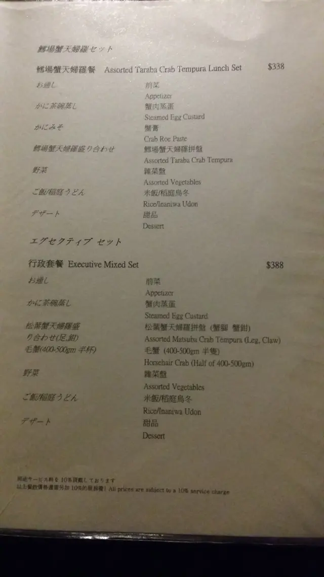lunch menu 的價錢選擇太少 ($300幾一跳到$700。如果有多些餐定價於$400-$500,有多一款蟹,如蟹剌身