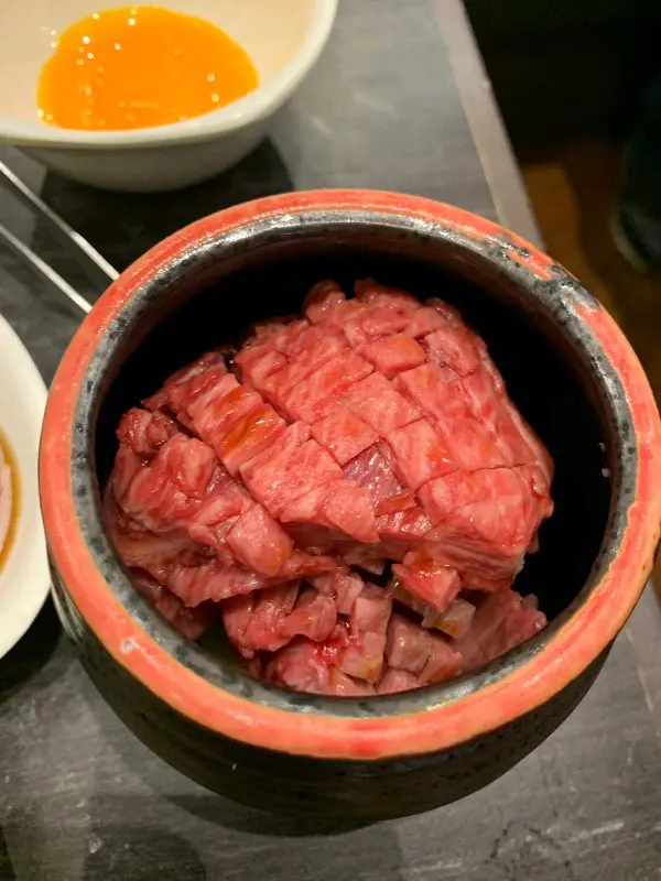 牛紋好清晰,好均勻。燒完後已經分唔到邊款打邊款,只知燒完既牛好鬼香。每款牛有唔同程度既口感同味道。總括而言,口感非常豐富,有啲入口即溶,有啲要趙兩下,但全部都好juicy。