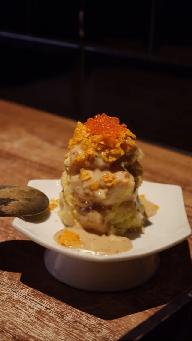 薯仔沙律幼滑,加埋青瓜洋蔥一齊食,幾清爽解膩! 但重點都係on top嘅卡樂B同蟹籽😍