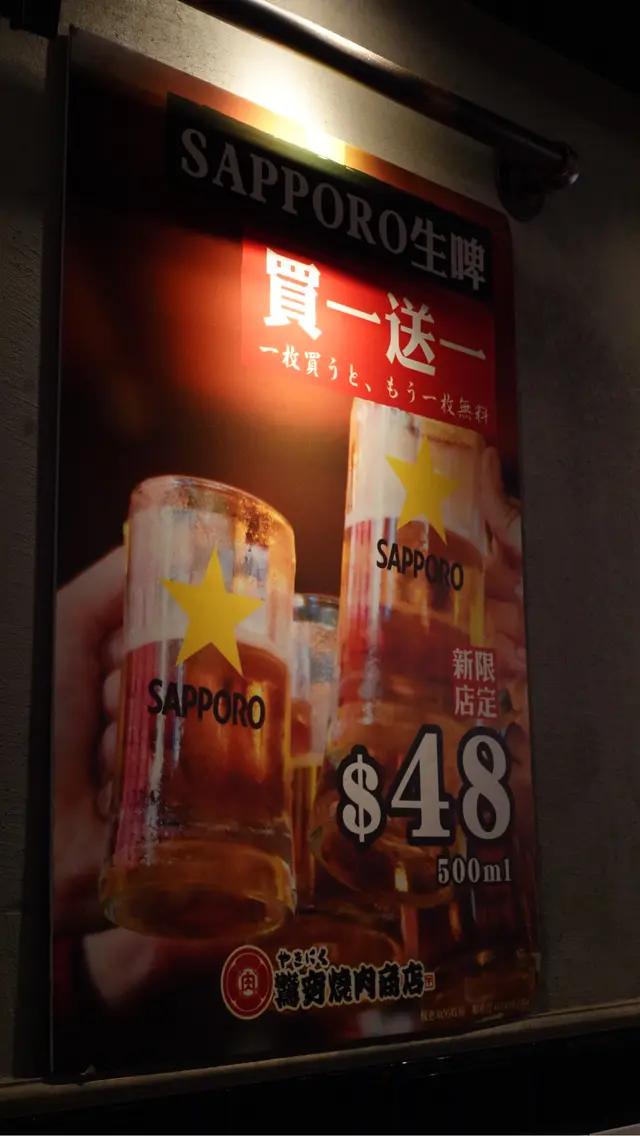燒肉必須配啤酒,生啤做緊買一送一,圍返廿幾蚊咁大杯抵飲👍