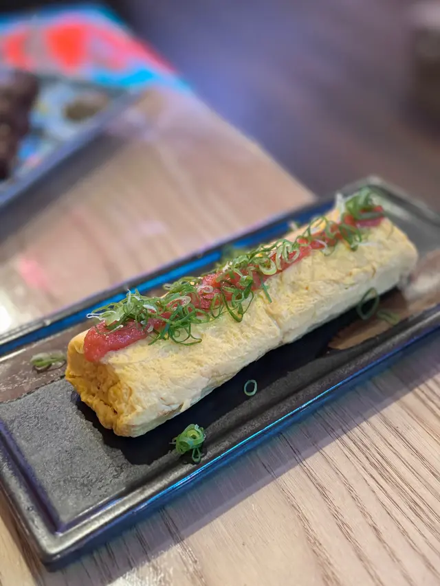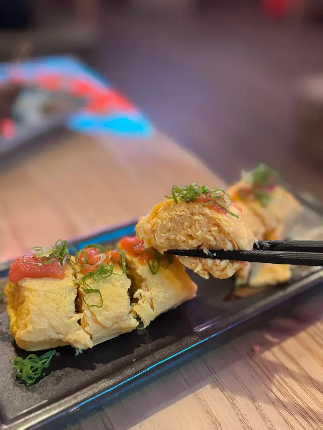 明太子醬厚燒玉子($78) 玉子幾厚身,面層鋪一層明太子醬,可惜不夠熱