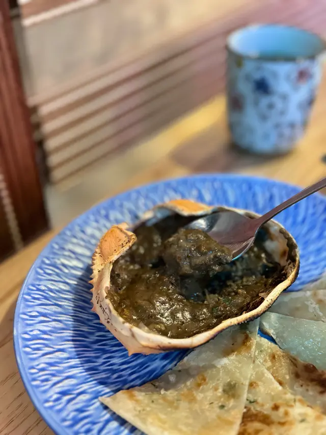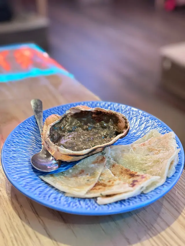 蟹味噌甲羅燒($78)加薄餅($16) 好豐富既蟹膏,好濃味,第一次配薄餅,非常夾!