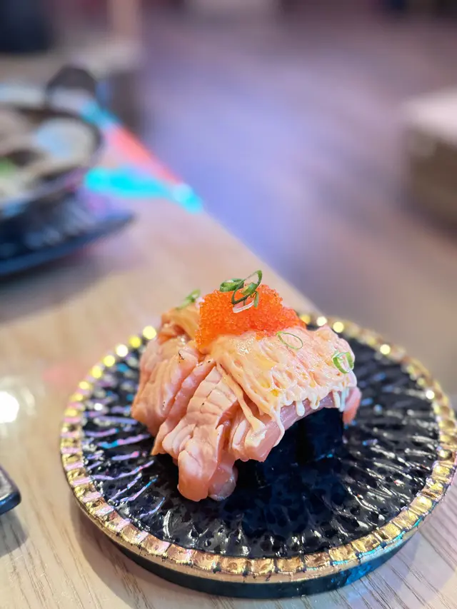 三文魚層層疊($138) 份量超級厚的三文魚,面層鋪一層芝士,店員會即刻燒,好有焦香