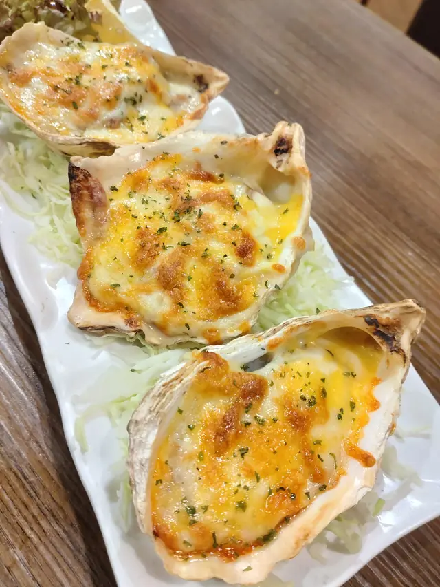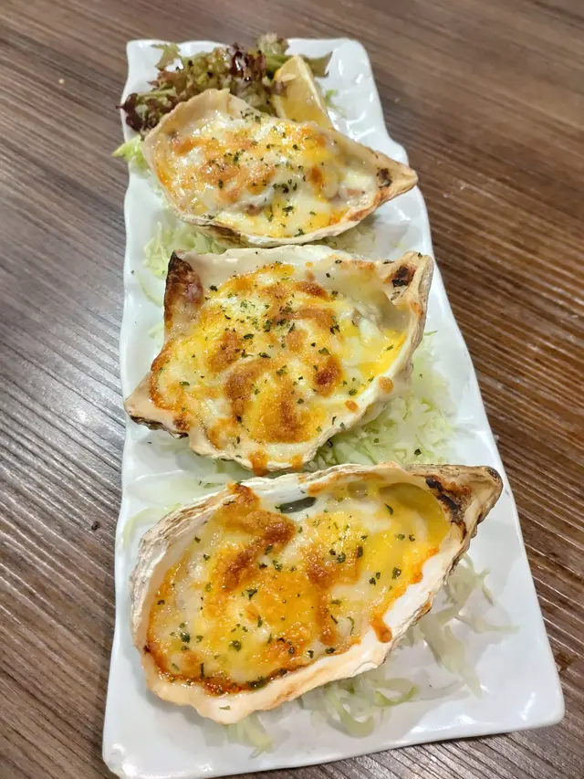 芝士焗天火蠔,價錢不貴,而且都幾大隻,表面鋪滿芝士,烤得微焦,可拉絲,生蠔幾新鮮,不會乾,口感不錯。