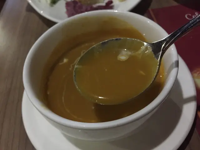 淡黃淡橙太陽色的龍蝦湯,混和未混合好的奶白忌廉,湯質變得更稀薄柔滑。濃湯之中帶有咸香海洋的風情,龍蝦鮮味滑不溜口。不過濃湯之中未有蝦肉的存在,口感上始終感覺欠一點點東西,未算完美滿足。