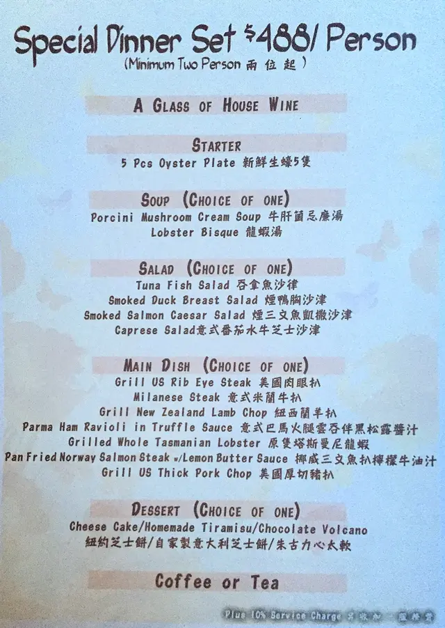 但令人最期待的是,是當晚有位駐場菲律賓鬍鬚叔叔整晚不停獻唱,除了為在場壽星仔獻唱生日歌外,當中更唱出不少為人熟識的舒情歌,他更走過來為我們唱了兩首的點唱歌,包括《I'm yours》同《Beauty and the Beast 》,直情將整晚氣氛推上高潮,令人感動。