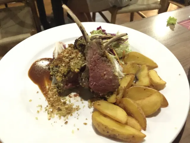 羊架的表現來得更精彩。表面流露出誘人迷惑的炭燒紋路,熟透深竭的外層,切開卻是完全紅潤菲菲的五成熟,絲毫沒有多半的可怕血水滲出,表現令人滿意,肉質腍身得來卻充滿咬口。