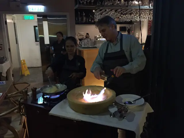 餐牌之中還有大受客人歡迎「芝士巨輪卡邦尼意粉」,雖然我倆當晚也沒有點這道菜,不過由於托隔離枱的鴻福,並由意籍總經理Antonio親自為客人即席表現煮意粉,大飽眼福。