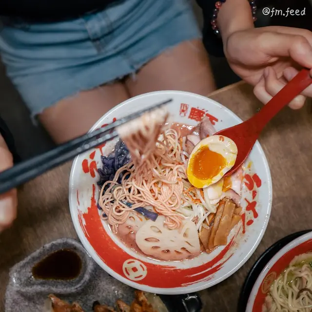 我哋仲叫咗支富士山柚子汽水🥤,拉麵加配左糖心蛋同餃子🥟,腩肉同肩肉,仲有紫菜。