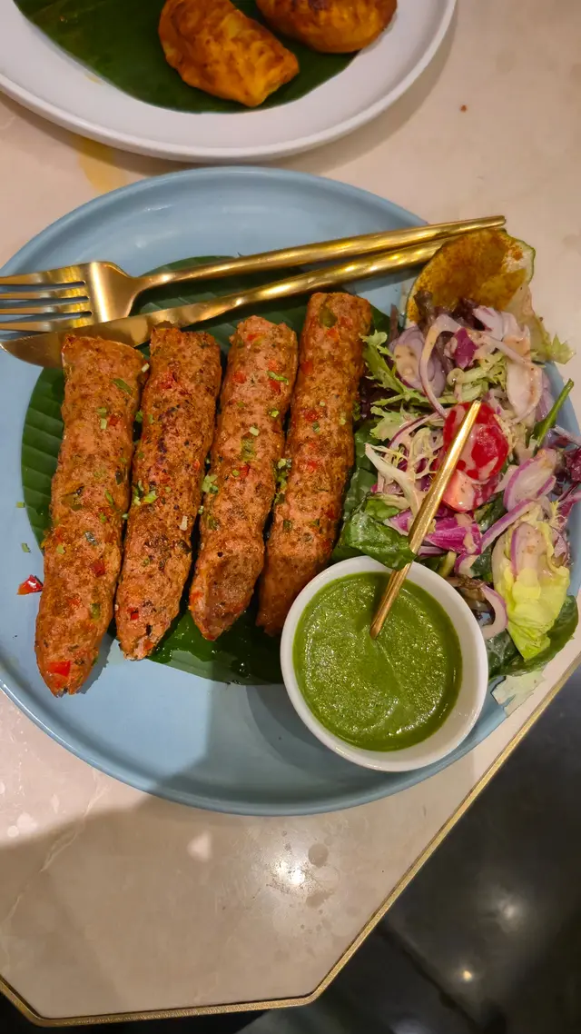 Glafi Seekh Kebab即係羊肉串,手打烤羊肉混合多種香料,唔羶但又好有羊味,配沙律同青醬一齊食係幾唔錯~