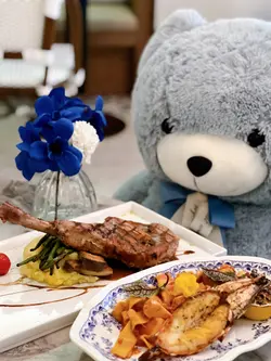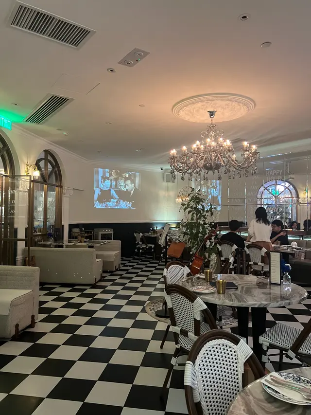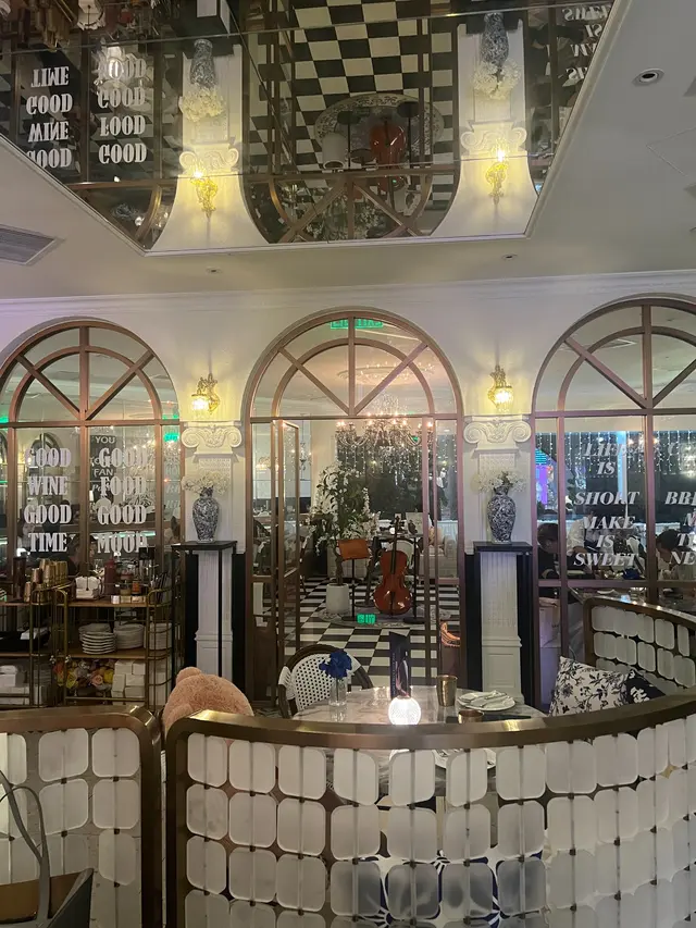 約咗朋友嚟食飯見到呢間餐廳真係好有特色💙 歐陸式嘅宮廷風中間仲有個大噴水池真係好氣派⛲️水晶燈配上電視播住黑白嘅經典電影Breakfast at Tiffany's 真係有種華麗又優雅既感覺🖤 食物同樣好有水準約會黎打卡絕對一流📷