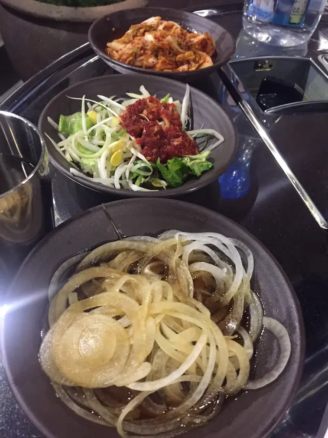 吃過烤肉後,來個水冷麵cool down一下。麵條質地十分煙韌彈牙,泡在大碗的冰冷湯底。湯底偏甜帶酸,味道豐富;加下蕃茄、青瓜、烚蛋作配料,即使令熱騰騰的自己冷卻下來。