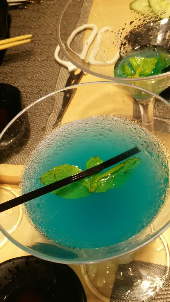 一入到嚟即刻送左杯藍色嘢飲嚟,係送嘅,甜甜哋果汁咁,唔識講。只限一杯。
