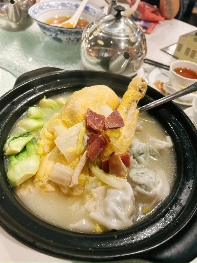 🥘砂鍋雲吞雞個湯底超清甜鮮味,大大粒足料雲吞仲有半隻雞都超級滑