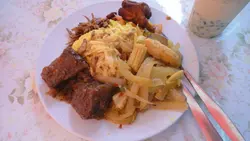 正宗印尼式快餐店 momoko桃子Level 12010-11-1235 views Follow 位於觀塘裕民坊巴士站(涼茶店)附近,有一間印尼式快餐店。我試了他們最出名的黃薑飯和珍多冰。 環境方面:只得10個位左右,夏天去會熱死,因為沒有冷氣。 印尼式黃薑飯 及 珍多冰印尼式黃薑飯 黃薑飯($33): 由於在約2:00PM 食。 齋菜(佛手瓜、豆卜...)都開始凍了,不過小小酸辣好醒胃。 巴東牛肉好淋、好入味。 魚乾、花生加上黃薑飯,是一流的配搭。 最可惜是雞腿很「鞋」。 珍多冰($13): 椰汁甜度剛剛好,不會好似飲水。 珍多我覺得淋左多d。 The above review is the personal opinion of a user which does not represent OpenRice's point of view.LikeShare正宗印尼式快餐店 金橋印尼快餐 https://s.openrice.com/QrKT0NdyG00Report Post Ratings4Taste3Decor4Service4Hygiene4ValueRecommended Dishes印尼式黃薑飯 及 珍多冰印尼式黃薑飯Date of Visit2010-10-30Dining MethodDine InSpending Per Head$46