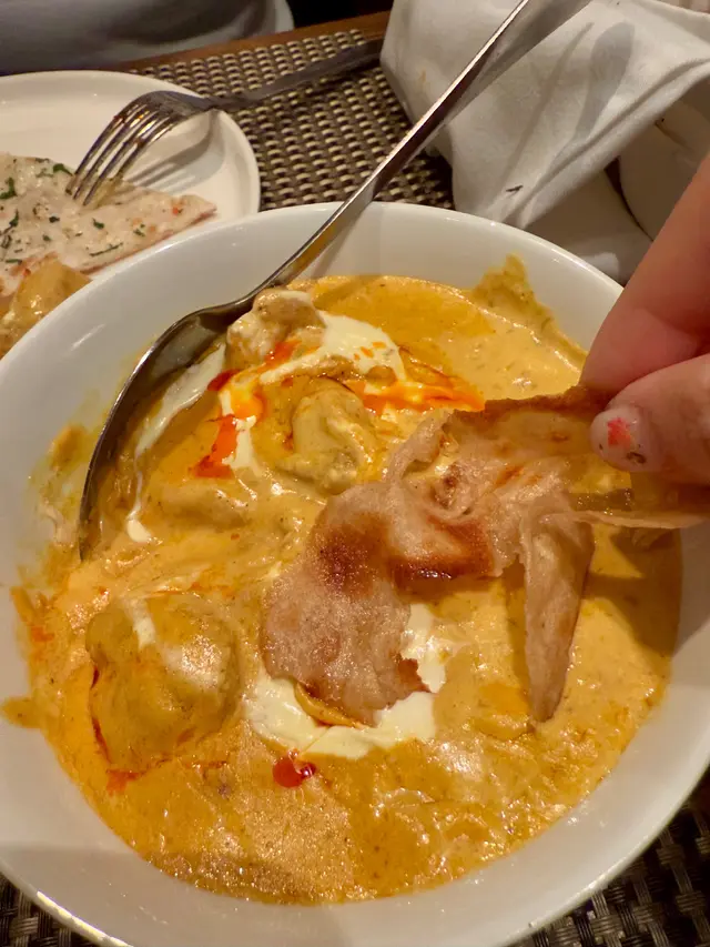 淨係我哋揀咗酸辣鮮蝦、白腰果汁煮雞、tandoori chicken、naan、酥皮薄餅,真係飽到上心口😂
