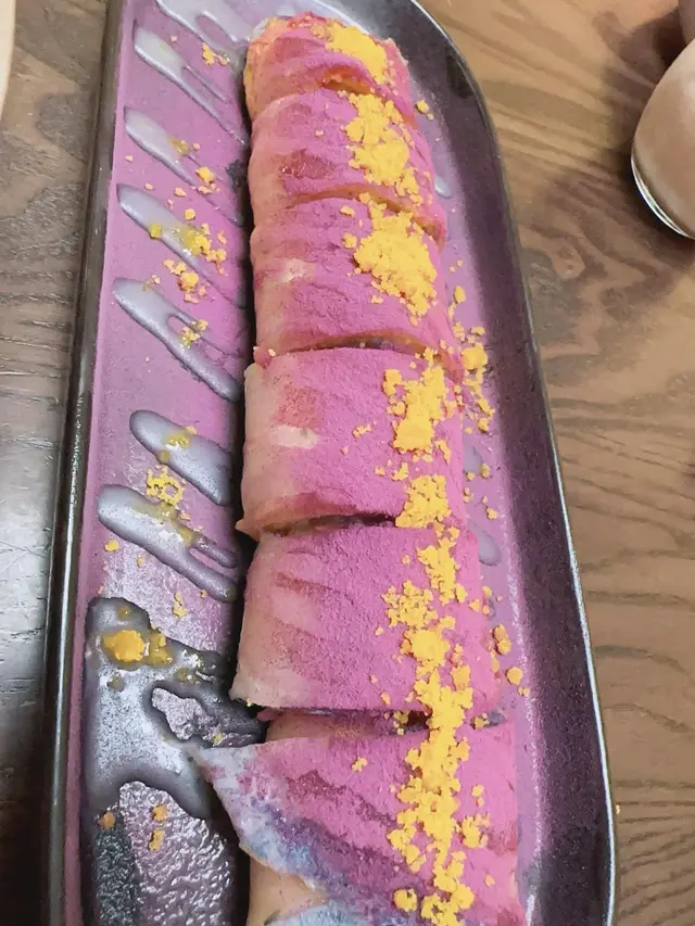 用鹹蛋黃碎灑面,芋泥新鮮程柔滑的,蛋餅稠密緻滑,非常新鮮,非常足料