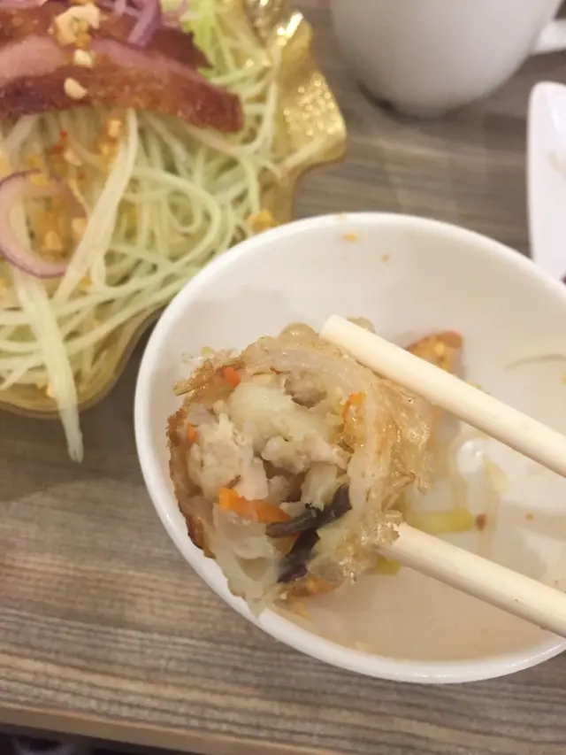 因為食得出菜式既味道同口感同出面既食肆真係有差別,忍唔住向伙計探料,原來老闆專程係越南學廚,材料都係越南入口,務求將當地口味完美呈現。好高性價比!野食份量太大,2個人食唔哂先係百零蚊埋單。不過可能天氣熱,冷氣有d大,啲菜嚟到好快變凍,得快d趁熱食!