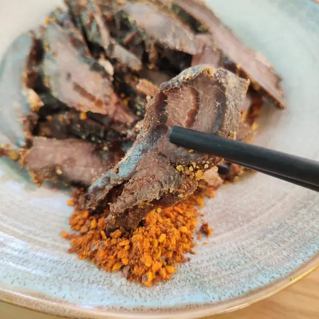 醬牛肉:牛肉肉質鮮嫩,醬汁濃郁醇厚,恰到好處的酸甜滋味,令人回味。牛肉的外表酷似卥水牛展,別具特色,無疑是一道不可多得的新疆風味佳餚!😄😄😄