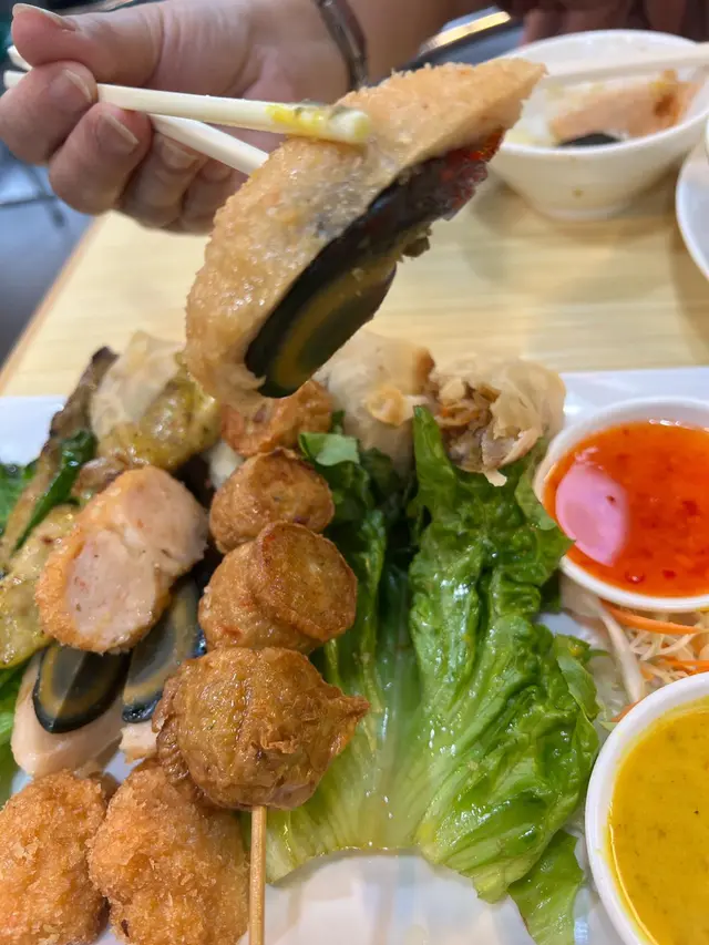 春卷的外皮薄脆,內餡通常由新鮮的蔬菜和肉類組成,口感清爽,最喜歡的一個小食