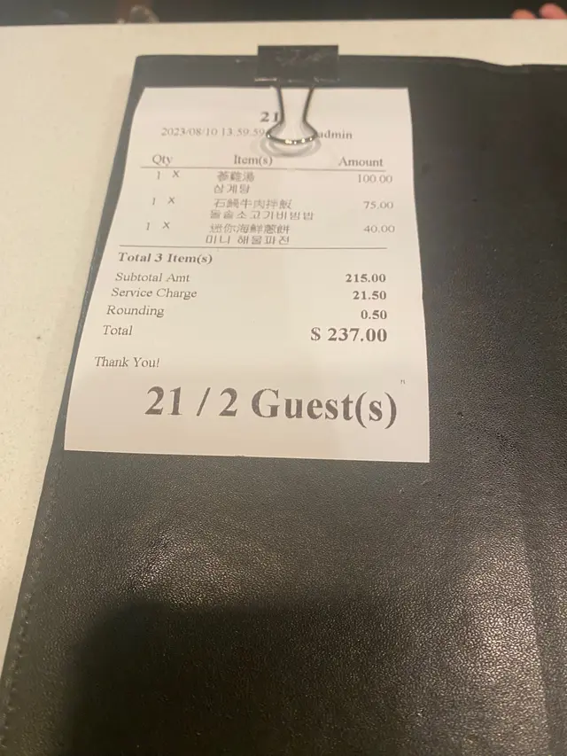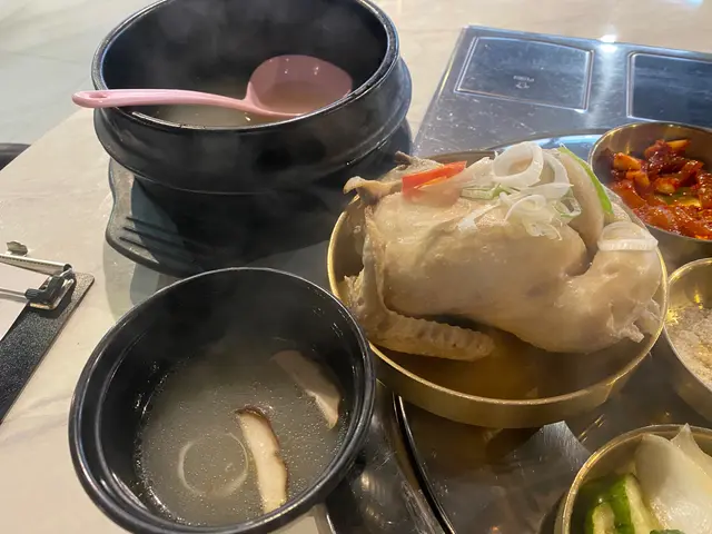 我哋選擇咗一個燒牛肉飯、人蔘雞湯同海鮮燒餅。