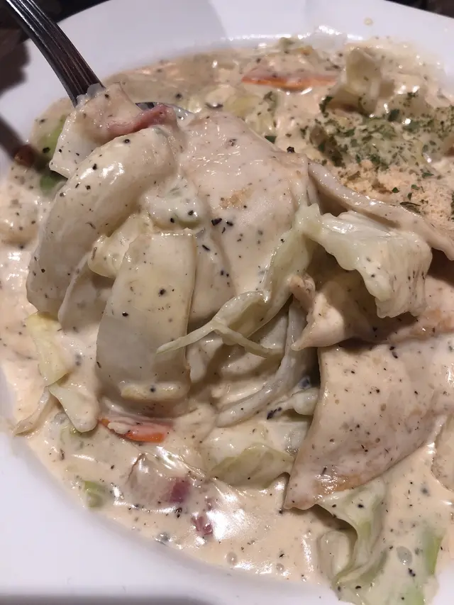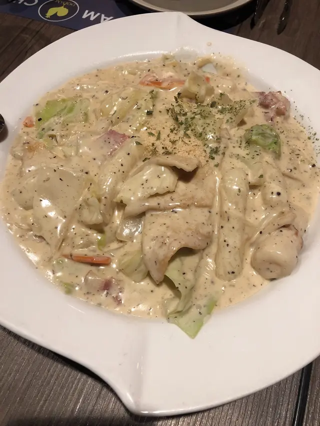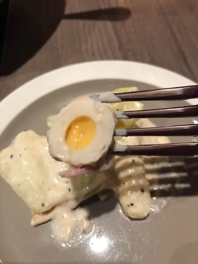 尼碟炒年糕好有驚喜,一來卡邦尼個汁香濃,二來佢有好多配料,口感豐富!最鐘意係入面啲蔬菜,索曬個汁,好好味!另外有個好似獅子狗既魚糕,入面係流心芝士,好正!不過尼碟野既主角年糕就比配角比下去了,年糕略嫌淋左少少,如果再煙un啲就perfect 😋
