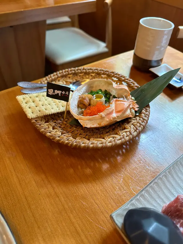 海膽蟹味噌甲羅燒是一道值得推薦的招牌菜。新鮮的海膽與蟹肉搭配上濃郁的味噌,再以甲羅作為容器烹煮,這種獨特的烹調方式不僅保留了食材的原始風味,還增添了一絲絲的海鮮鮮甜,是一道令人難以忘懷的美味佳餚。