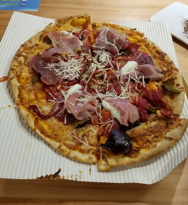 水牛芝士巴拿馬火腿番茄醬薄餅:佢應該係即叫即整,因為我經過水吧時,見到個焗爐著咗焗緊薄餅。薄餅熱辣辣、薄身、脆口。除眼見水牛芝士同巴拿馬火腿鯡,個底仲有其他芝士、"淋"咗嘅茄子同紅椒,味道上偏鹹亦有番茄既酸味,略為遜色。反而,之前食過嘅三文魚薄餅較為好食。