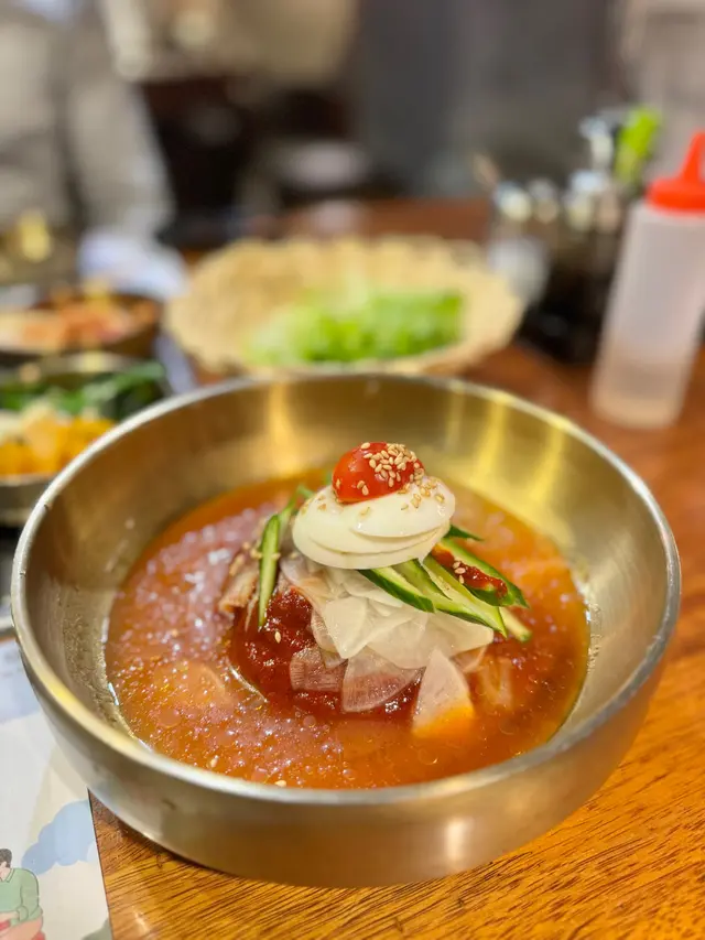 食韓燒一定會叫返個冷麵解膩,呢度既拌冷麵麵條保持彈牙爽口,將青瓜絲、醃蘿蔔同辣醬拌勻後口感豐富味道清新,正好配搭油份較重既燒肉!