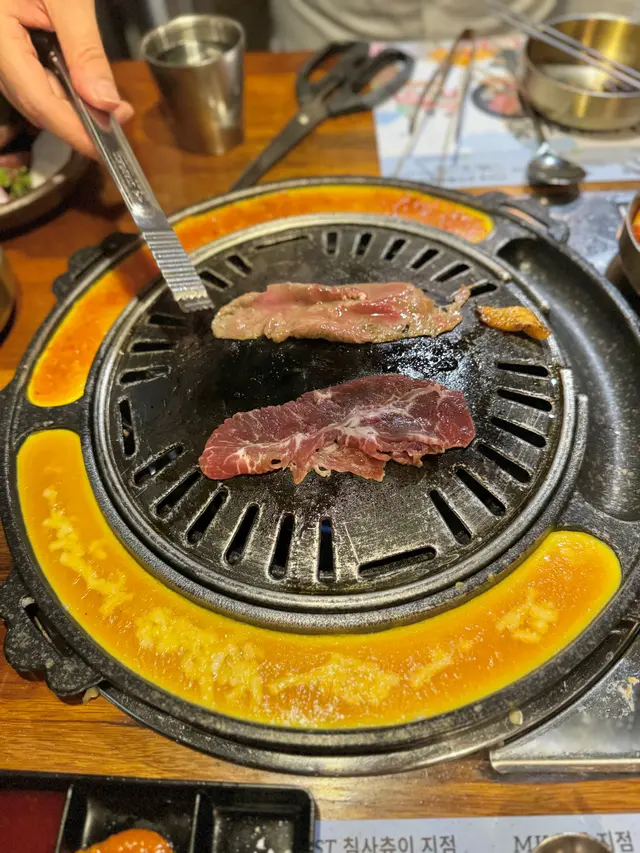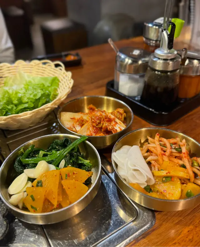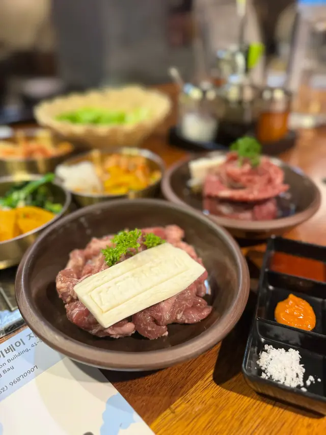 尖沙咀分店座位闊落有空間感,泡菜、醃菜、生菜等等全部自助任食,氛圍就好似置身韓國一樣🇰🇷餐牌上除咗豬肉同牛肉,仲有雞肉、海鮮同其他單點菜式,性價比唔錯,兩個人嗌兩款肉一款主食已經好夠飽!🙆🏻♀️