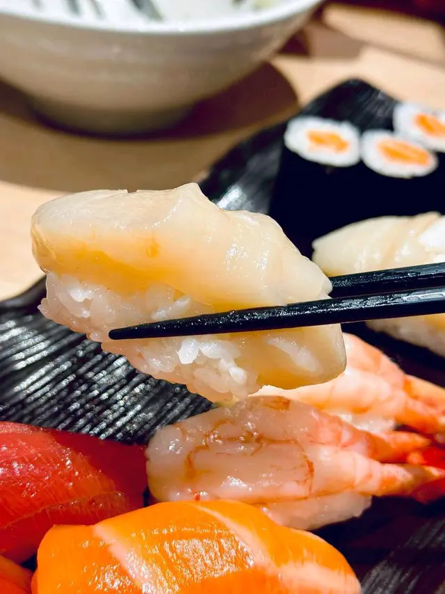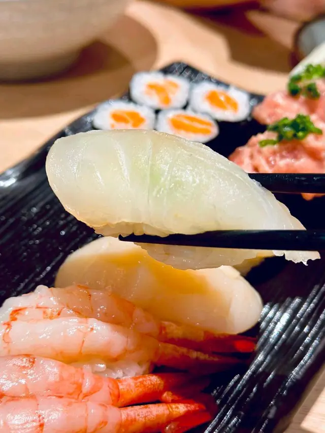 鯛魚鮮甜度高,帶子肉厚; 最令人驚喜既係葱吞拿魚腩,魚腩肉綿綿如蓉,超級幼滑軟綿。