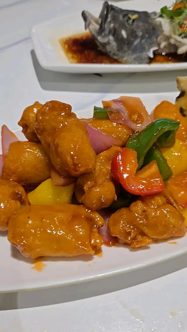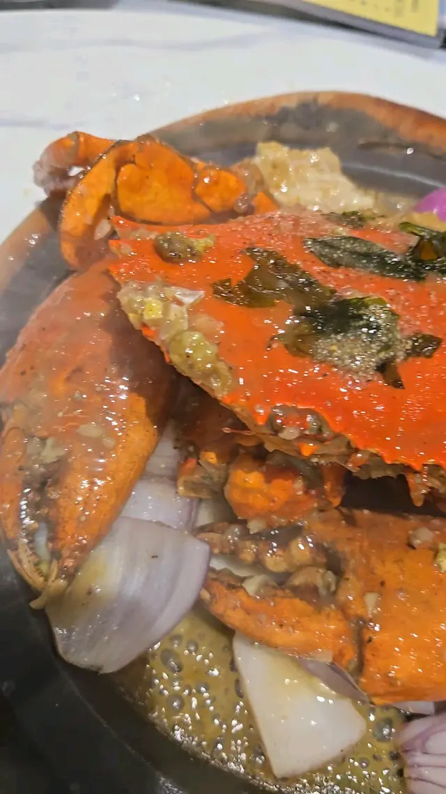 一碟碟菜餚接連上枱,香氣交織,令人食指大動。招牌白胡椒蟹用鐵板呈上,熱辣辣香氣撲鼻,胡椒的辛香完美突顯蟹肉鮮甜,一啖咬落鮮嫩多汁、滿口海味,令人回味無窮。菠蘿脆皮咕嚕肉色澤金黃,外層酥脆,裡面嫩滑,搭配微酸微甜嘅醬汁同新鮮菠蘿,每一口都叫人著迷。椒鹽八味脆皮豆腐粒酥香彈牙,豆腐嫩滑中帶出椒鹽嘅香辣,引人一粒接一粒停唔到口。