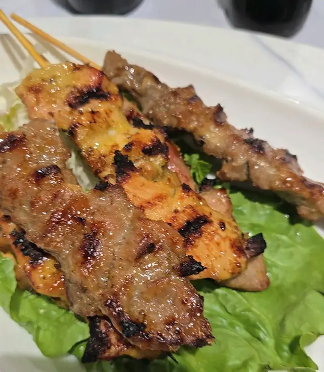 孖寶菜式堪稱今晚焦點~清蒸藍瓜子斑肉質細嫩,魚鮮味極致鮮明;配埋細心調味的泰式海南雞,滑溜不膩,雞肉與香草幽香交織,食落更顯層次。蒜子火腩炆斑頭腩,火腩香氣撲鼻,炆煮至入味,膠質與魚脂在嘴裡化開,令人陶醉。泰式串燒一次過品嚐到雞、豬、牛三款肉,炭香四溢,配搭特製醬汁甘香惹味,舌尖瀰漫東南亞風情。