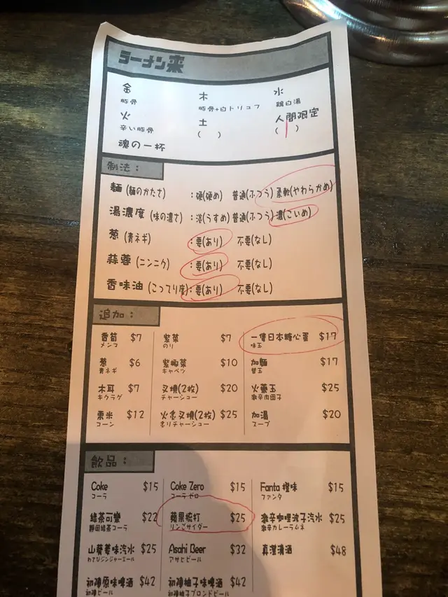 餐廳嘅拉麵以金木水火土作為簡寫。不過餐廳做緊兩款人間限定,當然不能錯過。