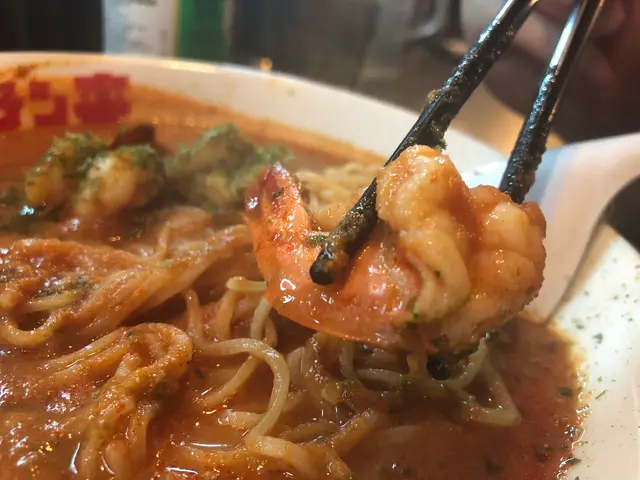 至於朋友叫咗極上海老吟釀拉麵,一上枱就已經聞到陣陣蝦既鮮味,湯頭可謂相當濃郁,海蝦亦非常彈牙。麵條方面,朋友選擇左普通,結果麵條都幾彈牙。