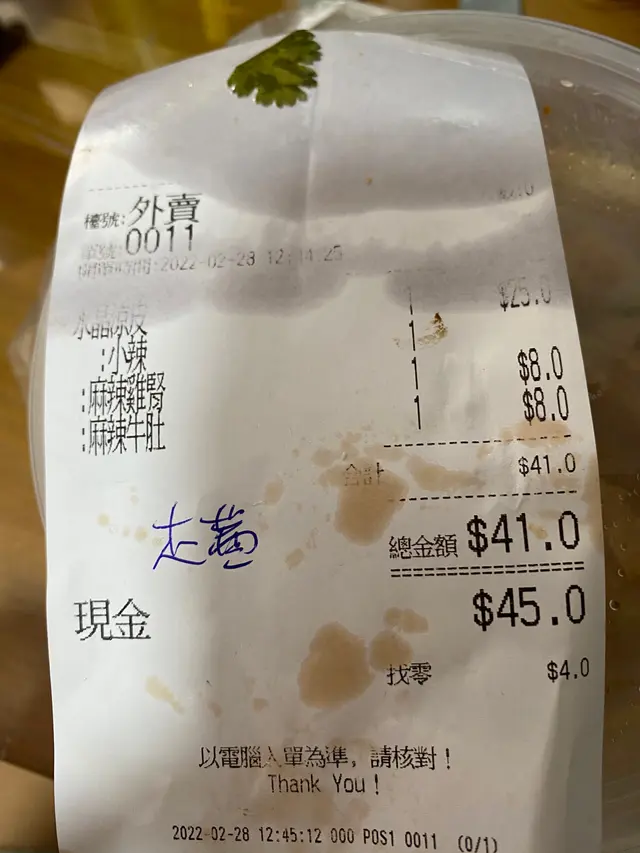 每次食都不歡 Chelsey*Level 22022-03-03224 views Follow 啱啱新開張嘅時候食過一次落咗單之後等咗足足20分鐘先拎到諗住新開張,可能唔熟架步,算啦第一次去食手撕雞撈麵,手撕雞正常但係個面係除咗辣味就冇其他味完全沒有想再幫襯嘅意欲到前兩日,第二次食,諗住再俾多次機會佢啦我企咗喺門口大約3分鐘先落單我肯定前面係冇人等緊外賣亦都冇人排隊買嘢食我先至買一樣等咗足足10分鐘今次搞涼皮,同開張嘅時候一樣得個辣子冇任何鹹味我仲要自己返屋企再加豉油撈醬好失望,以後都唔會再幫襯寧願幫襯蔡記啲大陸姐姐都唔會再幫襯The above review is the personal opinion of a user which does not represent OpenRice's point of view.LikeShare每次食都不歡 無辣不歡 https://s.openrice.com/QrKT02IL200Report Post Ratings1Taste3Decor1Service5Hygiene2ValueDate of Visit2022-02-28Waiting Time10 Minutes (TakeAway)Spending Per Head$41
