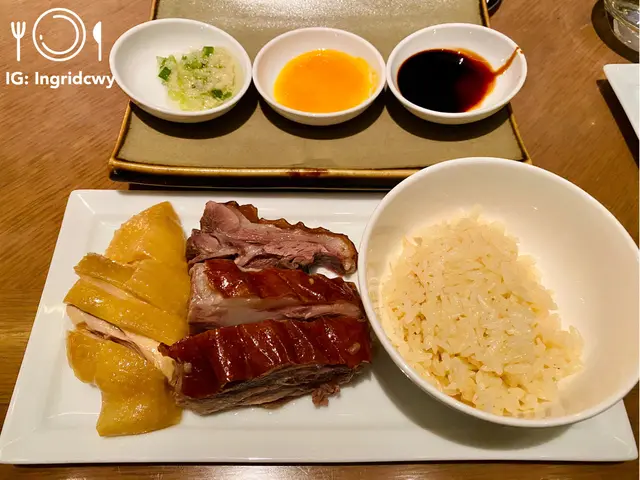 我哋第一樣去攞嘅就係燒鵝同海南雞,因為男朋友記得佢嘅燒鵝髀係有限供應,所以一定要去攞左先。我就拎咗海南雞飯加3件燒鵝髀,廚師將燒鵝放落個爐道熱一熱先再俾我。燒鵝有啲肥,都幾香,但皮唔脆。海南雞係滑嘅,如果油飯再香d就更好食。