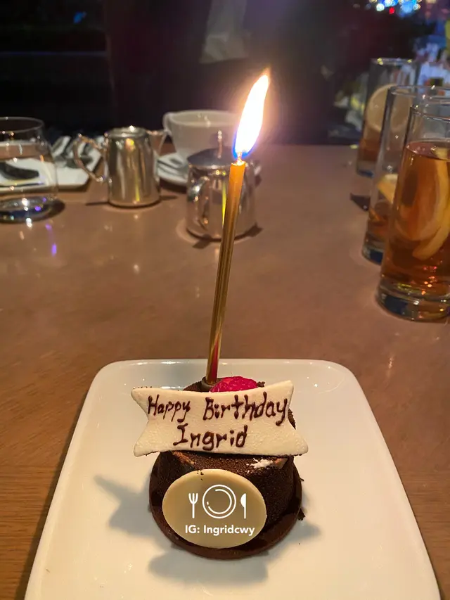 最後侍應捧上生日蛋糕,細細件外型唔算好出色但勝在朱古力mousse好香滑。