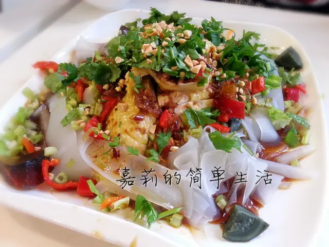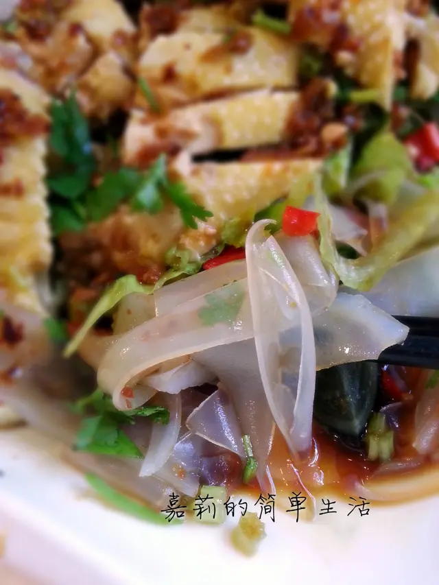 口水雞$69......點了菜一陣子, 隨即端來的是口水雞, 也是這裡的另一招牌, 雖不是選用新鮮雞, 但雞肉也相當嫩滑, 秘訣是將雞過冷河。這味口水雞辣度不多, 酸味突出, 用鎮江醋﹑甜豉油﹑大量的薑﹑蔥﹑芫茜等配料, 每種配料也有不同的香味, 便其味道層次很豐富, 酸中帶一點微辣, 在這炎炎夏日, 也能刺激起我們的食慾, 非常開胃。底層還鋪滿很多爽滑彈牙的粉皮, 索滿秘製汁醬, 吃得很滋味。