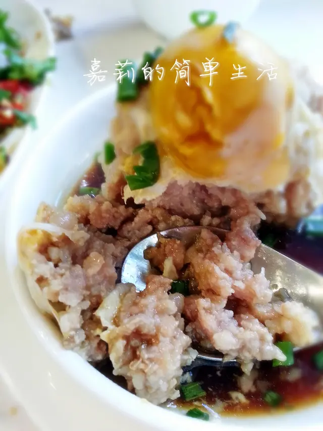 鹹蛋蒸肉餅$58.....肉餅要做到入口軟滑, 其中的秘訣是肥豬肉, 肥瘦肉兼有, 見到有些食譜寫著肥瘦肉的比例6:4, 民聲的肉餅也能見到肥肉的比例亦會頗多, 但入口並不會感到肥膩。豬肉混合多種調味後搓至起膠, 民聲亦很有誠意, 調配了秘製醬油, 蒸起肉餅後加入, 令味道更鮮甜, 肉餅入口軟滑香口, 伴飯吃一流。鹹蛋也是揀手靚貨, 顏色紅而油多。有點像太陽高高掛在山上的意境, 特別的美。平常吃不到一碗白飯的我, 亦難以抗拒這肉餅的誘惑, 吃了滿滿一碗白飯了。