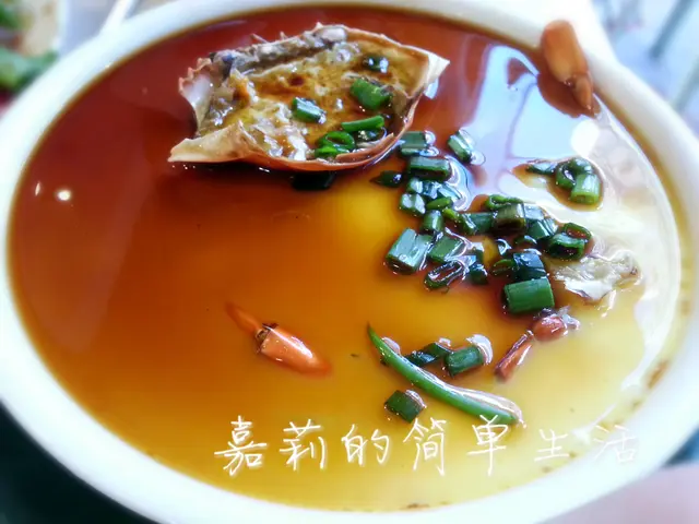 膏蟹蒸水蛋$59......這道菜的主角是滑滑的蒸蛋, 並不是膏蟹, 膏蟹的size很細, 用這個定價, 這當然是預料得到, 但也有一整隻蟹的份量藏在滑蛋之中。蒸滑蛋也相當花功夫, 為免蟹肉蒸得過火, 所以水蛋要一層層分次蒸。這裡的水蛋很滑溜, 非常有水準。