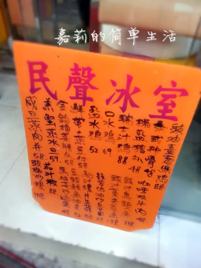 「民聲冰室」位於浣紗街, 由摩頓台巴士總站沿路行入約五分鐘左右, 紅橙色的外牆, 顏色鮮明, 是幾年前翻新過的。店鋪面積很小, 大約只可以容納10 多人, 18:00開始營業, 很快便滿座了, 便要選擇外圍的露天位子了。店內沒有餐牌, 只有一個橙色的膠牌放於門外, 寫上滿滿的家常小菜, 當然要點我極愛的肉餅山啦, 今次亦點了膏蟹蒸水蛋﹑口水雞。