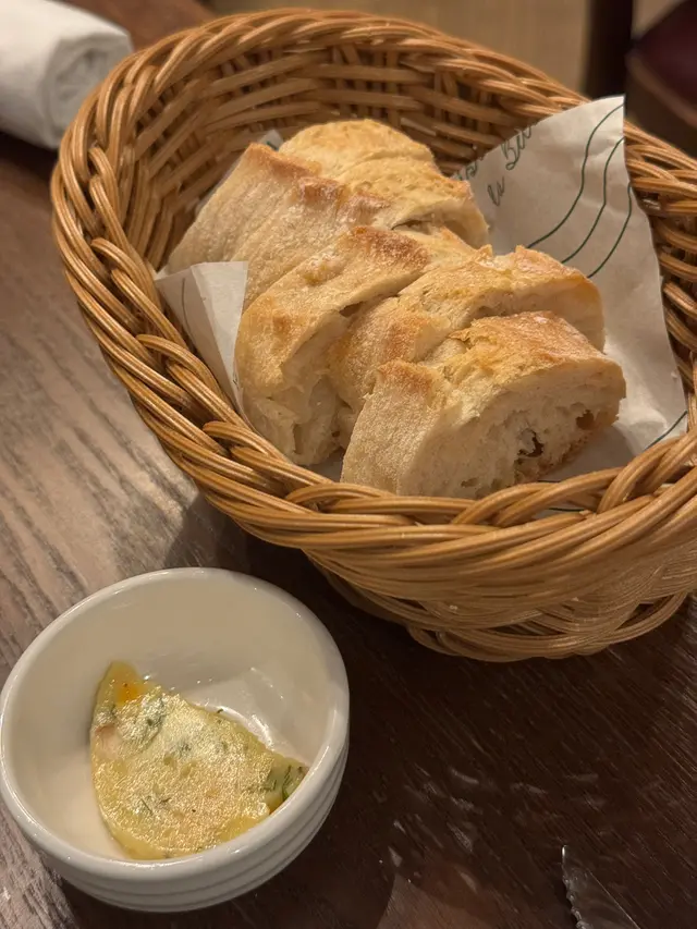餐廳氣氛唔錯,店員服務態度親切友善,叫完餐之後首先係餐包同埋自家製嘅牛油醬料,好味,餐包質素都鬆脆。