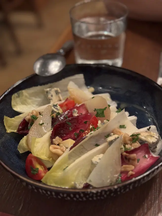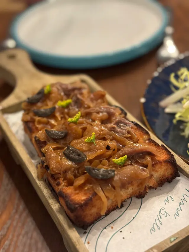 接住落嚟係前菜,首先有個尼斯洋蔥鯷魚橄欖薄餅,份量都幾多,每人有2-3件,呢三種食材都係美味之選,惹味,調味唔錯!