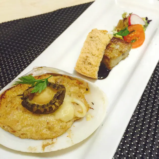 第三道 鵝肝松露蟹肉釀鮑魚 :