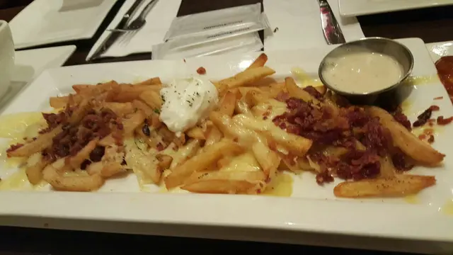 d薯條有調味過,加埋芝士同sour cream 係絕對既配搭,仲有d 過左火既煙肉粒,有d乾身。
