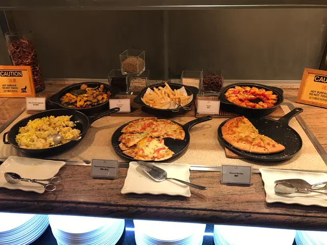 甜菜根漢堡扒, 葡汁焗三文魚卷, 香料羊肉串, 意式燒菜, 薄餅, 炸薯條,